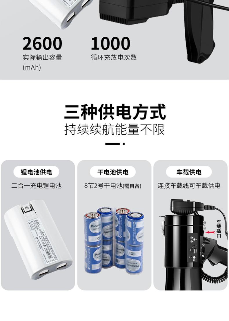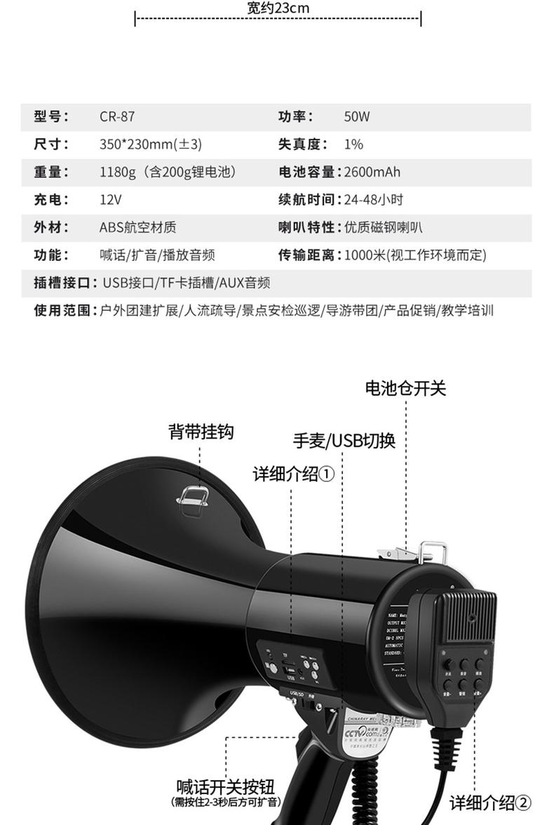 雷公王手持大功率喊话器喇叭 CR-87+2600毫安锂电池(个)