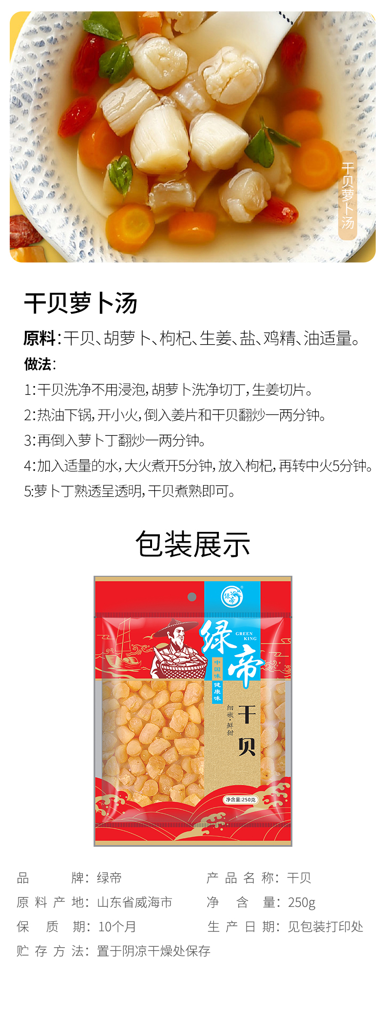 绿帝 干贝250g*1袋