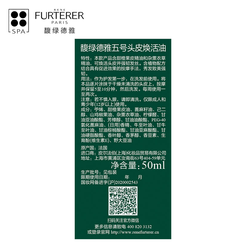馥绿德雅五号头皮焕活油50ml(计价单位:瓶)