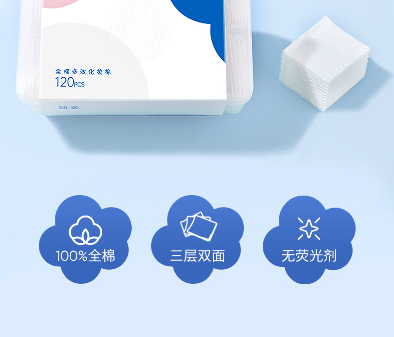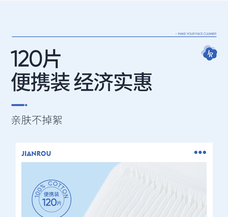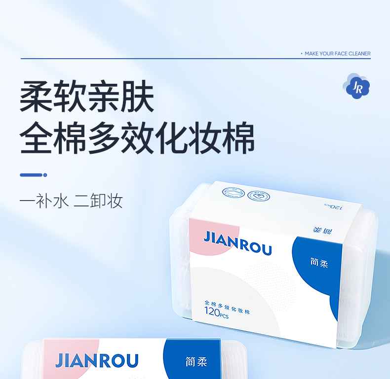 简柔(JIANROU) 纯棉双面平纹化妆棉120片*1盒
